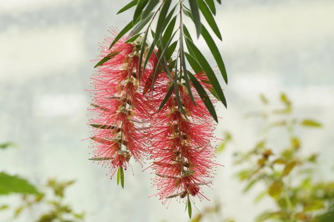 红千层属的垂枝红千层,像红色的试管刷。图片:含笑