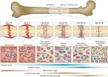 首先让我们先了解一下骨折的愈合过程,骨折愈合过程可分为以下几个阶段: