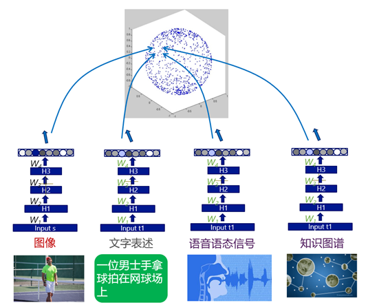 近年来,基于深度学习技术,语言和视觉等单一模态研究领域取得了突破性的进展,比如在人脸识别、物体识别与检测,图像生成,语音识别与合成,语义理解、机器翻译,机器应答及对话系统等单模态方向智能体的表现已经在很多特定的数据集上达到与人相当的水平。这些研究成果也已在现实生活中落地成为重要的应用。但另一方面,随着单一模态的基础问题逐步得到解决,研究人员也意识到更高层次的人工智能任务往往涉及到更复杂的跨多个模态的信息处理问题,需要对跨模态信息处理进行研究。同时,单一模态专业领域的研究往往局限于某种特定模态的信息,未能充分利用跨模态信息的优势,而人类对复杂的智能任务的处理往往也是基于不同神经中枢联动地处理各种模态信息进行的,不只是单单地利用某一种中枢进行任务处理。鉴于此,跨模态研究顺其自然地受到越来越多的关注,并逐步成为人工智能领域下一阶段的重要研究课题。
