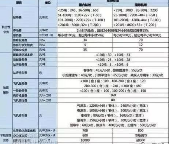 比如说飞机落地以后,需要引导车将其引导至停机位,每次引导费用100-500不等。