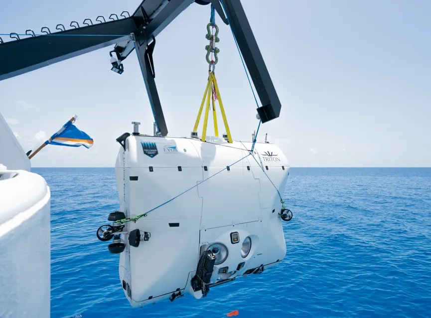 “限制因子”丨BBC 既然实现了重复利用,就算造价高达3700万美元(超过了卡梅隆的潜水器),单次旅行的成本还是会降下来。开头出现的750000美元旅行项目,要用到的交通工具正是这一台。那么,它和前辈们到底哪里不一样? 韦斯科沃最钟爱的,是那座90毫米厚的钛金属球形船舱,把水压挡在外面,不论潜到多深,舱里依然是陆地上温柔的气压: 球,是最擅长承受压力的形态,钛又是一种坚硬的金属,强强联合。但现实没有这么简单,船舱里的人类需要观察外面的世界,所以需要窗户。但当近乎完美的球体被打上了洞,结构变得不均匀,它就很容易被海底强劲的水压摧毁。 设计师思来想去,选择了锥形窗户,厚度200毫米,材质是丙烯酸玻璃,一共三扇。但丙烯酸不像钛那样坚硬,在大洋深处受到的水压会超出它的强度。为了不让窗户碎掉,就要在玻璃和窗框之间留下一部分空隙。海底的水压,大约会把玻璃往里挤7毫米,但玻璃还能保持完好。 窗户的形状,其实就是圆台丨Pearson 这座船舱内部直径1.5米,可以坐两个人。除了压强不受海水影响,温度和湿度也可控。 其实船舱只是一部分,而整台潜水器的形状也关系到乘客的安全。传统潜水艇大多是纵向的圆柱,驾驶舱在最前面,可团队担心这样设备的横向运动受限制。毕竟,当你下潜超过6000米深,没有别人能赶来搭救,一旦被什么缠住就GG了。所以,各个方向的运动都要考虑到。 也有人说,像是被压扁的牛奶包装丨EYOS Expedition 最终,团队把潜水器设计成了一个扁扁的“枕头”。这流线型的身躯,既能像斧子一样,快速地从上到下切过海水,也能灵活地向着前后左右切过去,全靠一根操纵杆来控制。 至于该往哪边走,海下有三只着陆器,会向潜水器发送信号;驾驶员要依据信号来判断自己身在何处,目的地又在哪个方向,然后前往。 图丨Atlantic Productions 对潜水器来说,一切仿佛势如破竹。但对人类来说,会是怎样的体验? 平静的海里惊心动魄 韦斯科沃说,一开始的300米是最焦虑的,因为在这段路程里,水压会从1个标准大气压上升到30个标准大气压,假如潜水器出问题,大概率就出在这里。 只要渡过起步阶段,后面可能变得异常平静。外面很快成了一片漆黑,如果不是深度计的读数不断变化,身在船舱都感觉不到自己在下落。不发生意外的话,就会这样安稳地到达海底。 那如果有意外呢?某一次试潜,韦斯科沃和小伙伴在下到大约5000米深的时候,闻到了烟味,发现是一块电路板烧了。他们赶快切断了这块电路板,同时扔掉压载物,立即上浮。不论在哪,不论电量,紧急上浮功能都可以使用。 正式下潜的过程中,韦斯科沃没有再遇到突发事件。 在那些平静的时光里,周围能听到的,除了无线电的噪声和风扇转动的嗡嗡,就是自己的心跳,一声一声都是寂寞。而下潜4小时,上浮4小时,整个过程都被困在一个1.5米直径的球体里,除了孤独还要忍受幽闭环境带来的压迫感。 对人类来说,旅程里最兴奋的环节,大概就是观察海底生物了。 韦斯科沃往窗外望到了合鳃鳗,鼠尾鳕,头顶透明的鼬魚,幽灵一般来去的狮子鱼......都是能在1000多个标准大气压下存活的勇士。 抗压能力最强的生物们丨BBC 如果观察不够过瘾,潜水器还自带一条机械臂,可以抓取岩石样本,带回岸上去研究。而两座的设定,就是为了在驾驶员之外,再带上一位科学家。 或者,一个好奇心胜似科学家、又比科学家胆(you)大(qian)的人类吧。 还有什么问题 马里亚纳海沟八日豪华游,是由旅行公司EYOS Expedition与韦斯科沃的潜水技术公司Caladan Oceanic合作提供的。行程包括三次下潜和三天休息,但休息不是让人类休息,是给潜水器补充氧气,以及重新安装压载物(帮助顺利下潜)。 为什么人类就不用休息?因为每次下潜的人(大概率)不一样,三次下潜其实是三个名额,目前已经有一人报名,还剩两个空位,预计今年5月成行。 作为挪威船级社评定的商业用船,“限制因子”深潜器参与的收费旅行项目,游客都可以购买保险,就像给普通的潜水艇旅程买保险那样。 并且,人类无需接受任何体能训练,更不需要学习自己操纵潜水器,就可以加入八日旅行团。 所以,这场海底之旅(除了钱)到底还有什么特别的要求? 200斤以上的人类不能报名。 一只“限制因子”在凝视着你丨EYOS Expeditions 参考资料: [1] Ward, T. (2020, March 15). Inside the daring mission to reach the bottom of all Earth's oceans. Retrieved from https://www.wired.co.uk/article/victor-vescovo-five-deeps-expedition [2] Golden, F. (2020, March 27). You Can Now Ride a Submarine to the Deepest Point on Earth. Retrieved from https://www.bloomberg.com/news/articles/2020-03-27/eyos-submarine-dive-to-challenger-deep-bottom-mariana-trench [3] Excell, J. (2019, March 13). Five Deeps: engineering an expedition to the oceans' deepest points. Retrieved from https://www.theengineer.co.uk/five-deeps/ [4] LIMITING FACTOR. (2019, January 19). Retrieved from https://fivedeeps.com/home/technology/sub/ 作者:栗子 编辑:Odette 本文来自果壳,未经授权不得转载. 如有需要请联系sns@guokr.com