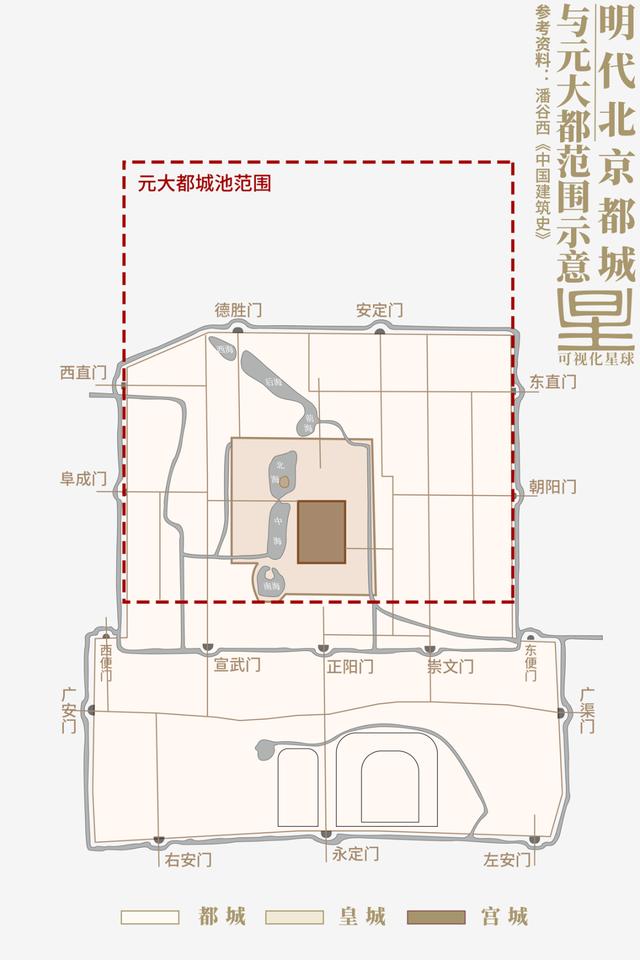 ▽明北京城与元大都城池对比示意| 制图@张靖/可视化星球