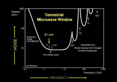 于是科学家们又将探测电磁波的范围扩大了一点,即波长为18厘米至21厘米(频率为1420至1720 MHz)的电磁波,并将这个范围形象地称为“水洞”(Water hole)。