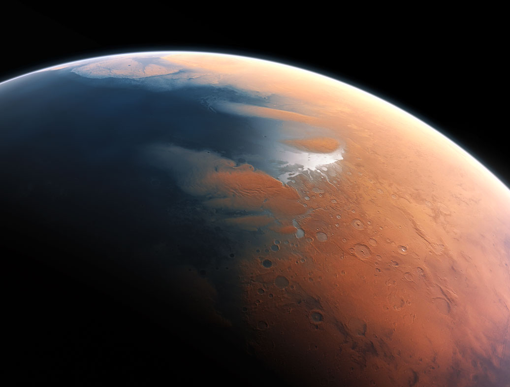 通过对火星的探测和研究,火星很可能曾经拥有磁场以及适宜的大气环境,液态水也曾经在火星的地表流淌,即使是现在,火星两极的白色冰盖仍然非常显眼。