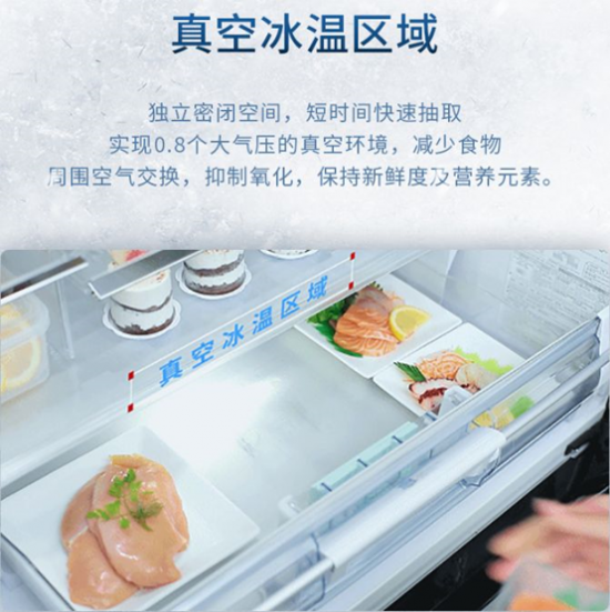 为了抗氧化,我们可以摄入含有维生素A、维生素C的水果等,但即便含有维A维C的食材自身也还是会发生氧化反应,不过好在食材可以放在真空环境当中,不仅能营造一个不利于微生物繁殖的环境,同时也能够最大程度上隔绝氧气。而冰箱就做到了这一点,它通过小型真空泵,将一个耐压的密闭结构空间建立成一个能够快速抽空空气的区域,真空环境能够有效维持食材原有色泽和水分,避免食材受潮或发干,减少食材与空气接触的机会,以此来抑制食材氧化。