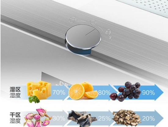 所以经过改良,部分冰箱采用了直冷和风冷混合的制冷方式,但这不能完全解决水分流失的问题,所以就出现了具备干湿分储功能的冰箱,简单来说就是准备出能够调节湿度的较为密闭的空间,最大程度上延缓食材水分流失。