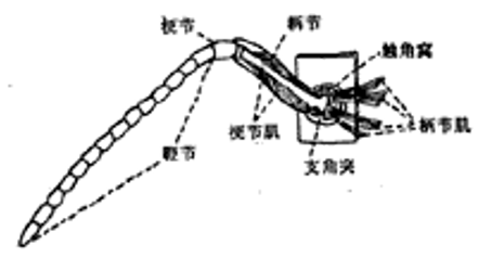 (1)线状(丝状):触角细长,呈圆筒形。除第一、二节稍大外,其余各节大小、形状相似,逐渐向端部变细。例如蝗虫、蟋蟀及一些蛾类等。