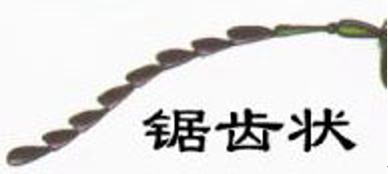 (3)锯齿状:鞭节各亚节的端部一角向一边突出,象一个锯条。例如叩头虫、雌性绿豆象等。