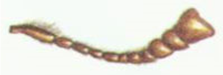 (7)锤状:鞭节端部数节突然膨大,形状如锤。例如瓢虫、郭公虫等。