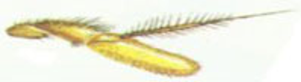 (4)栉齿状:鞭节各亚节向一边突出很长,形如梳子。例如雄性绿豆象等。
