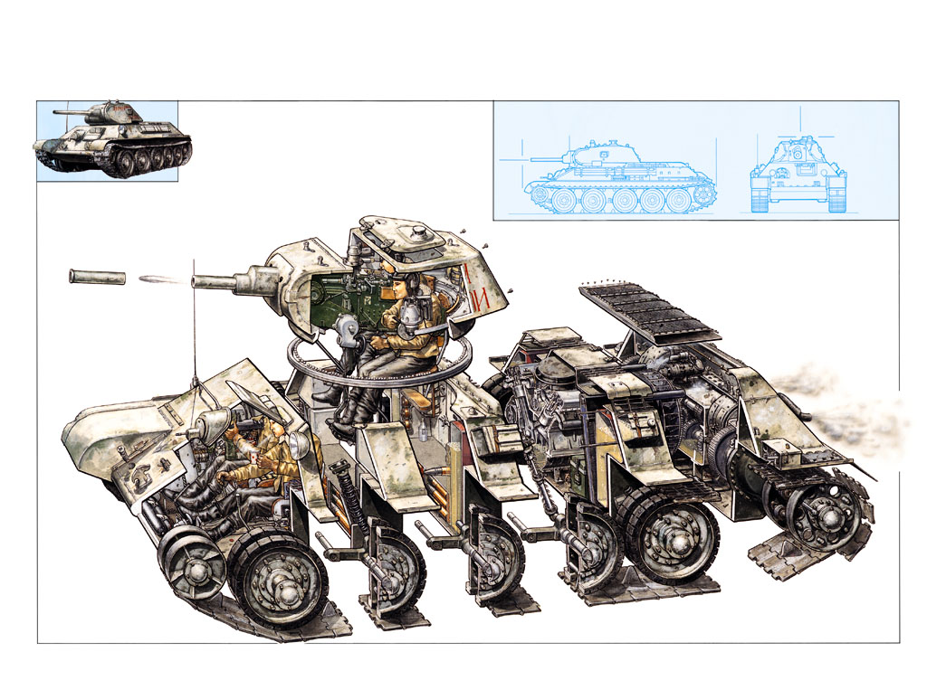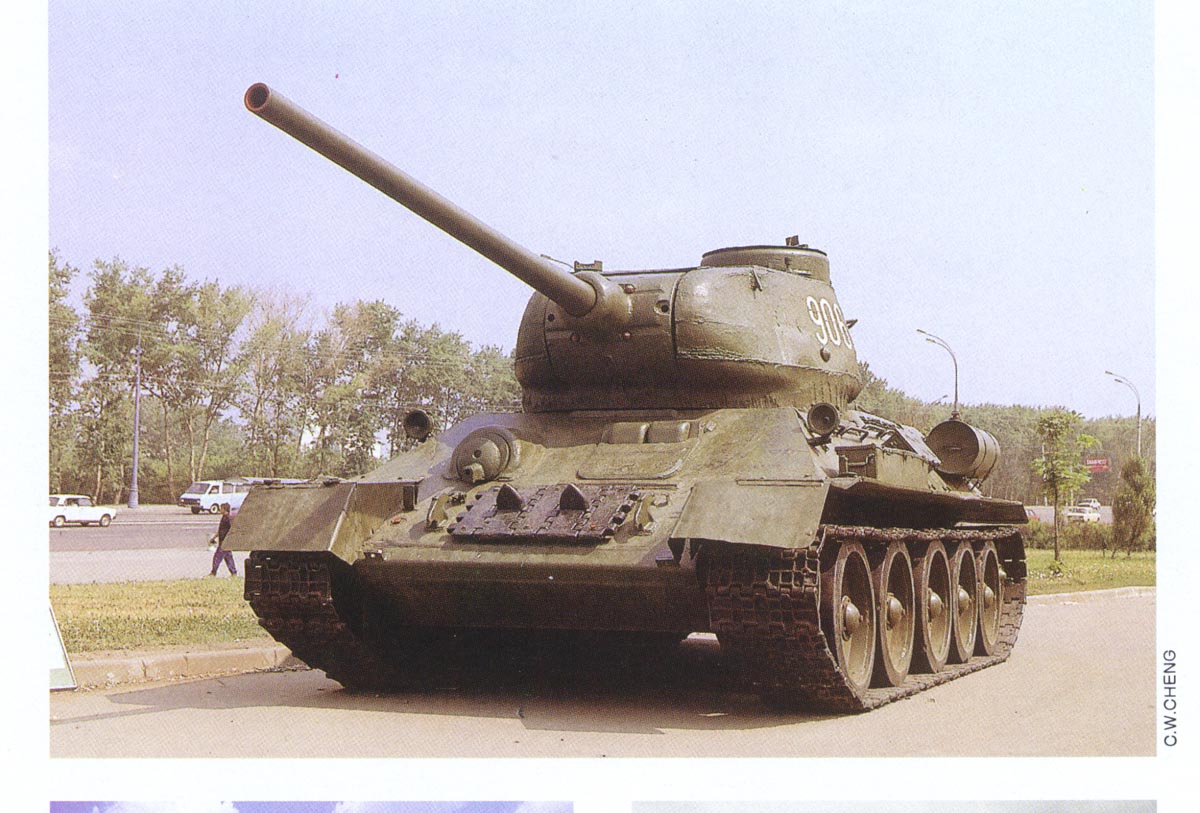 T-34中型坦克 T-34堪称是“二战中最优秀的坦克”,“火力、机动、防护三大性能综合平衡的一代名车”。典型化的总体布置,成为“现代坦克的先驱”;大功率专用柴油机,开创了坦克动力装置“柴油机化”的先河;大口径坦克炮,使“坦克成为最好的反坦克武器”;良好的综合防护性,使中型坦克成为二战中的主流;结构简单、工艺性好,使它真正成为“为战争而造”的坦克。
