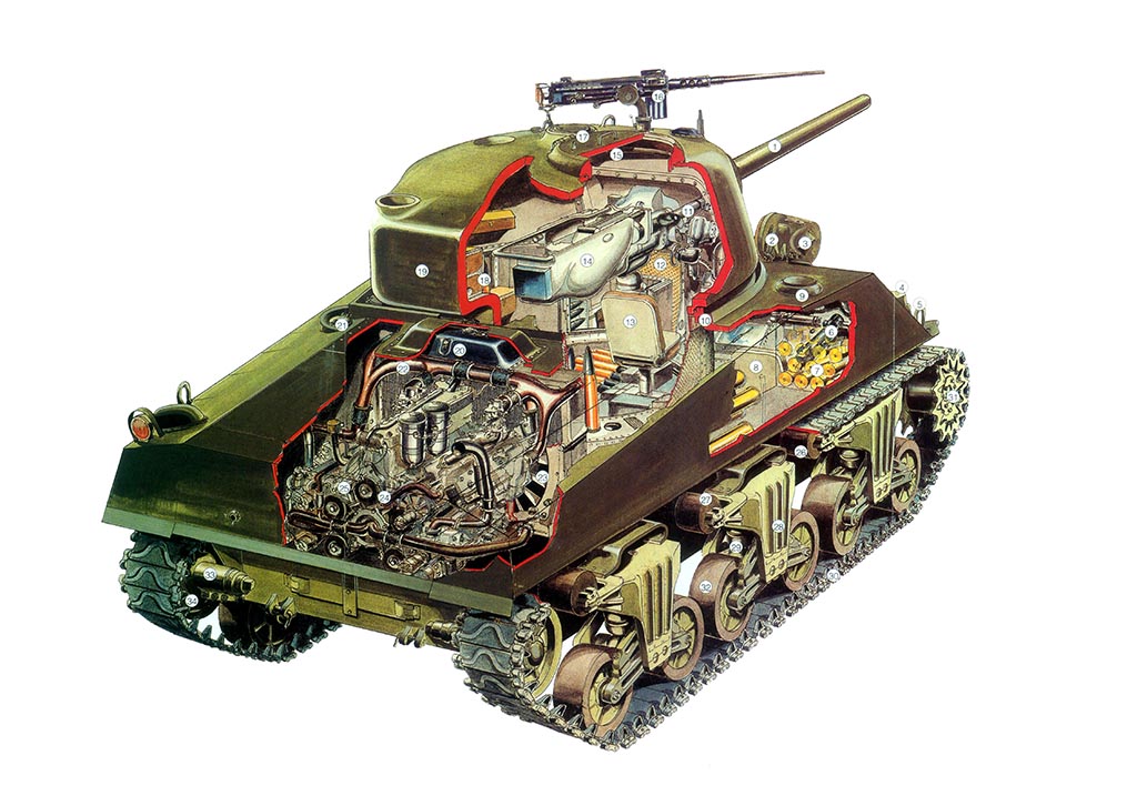 ▲ M4“谢尔曼”中型坦克的结构剖视图。