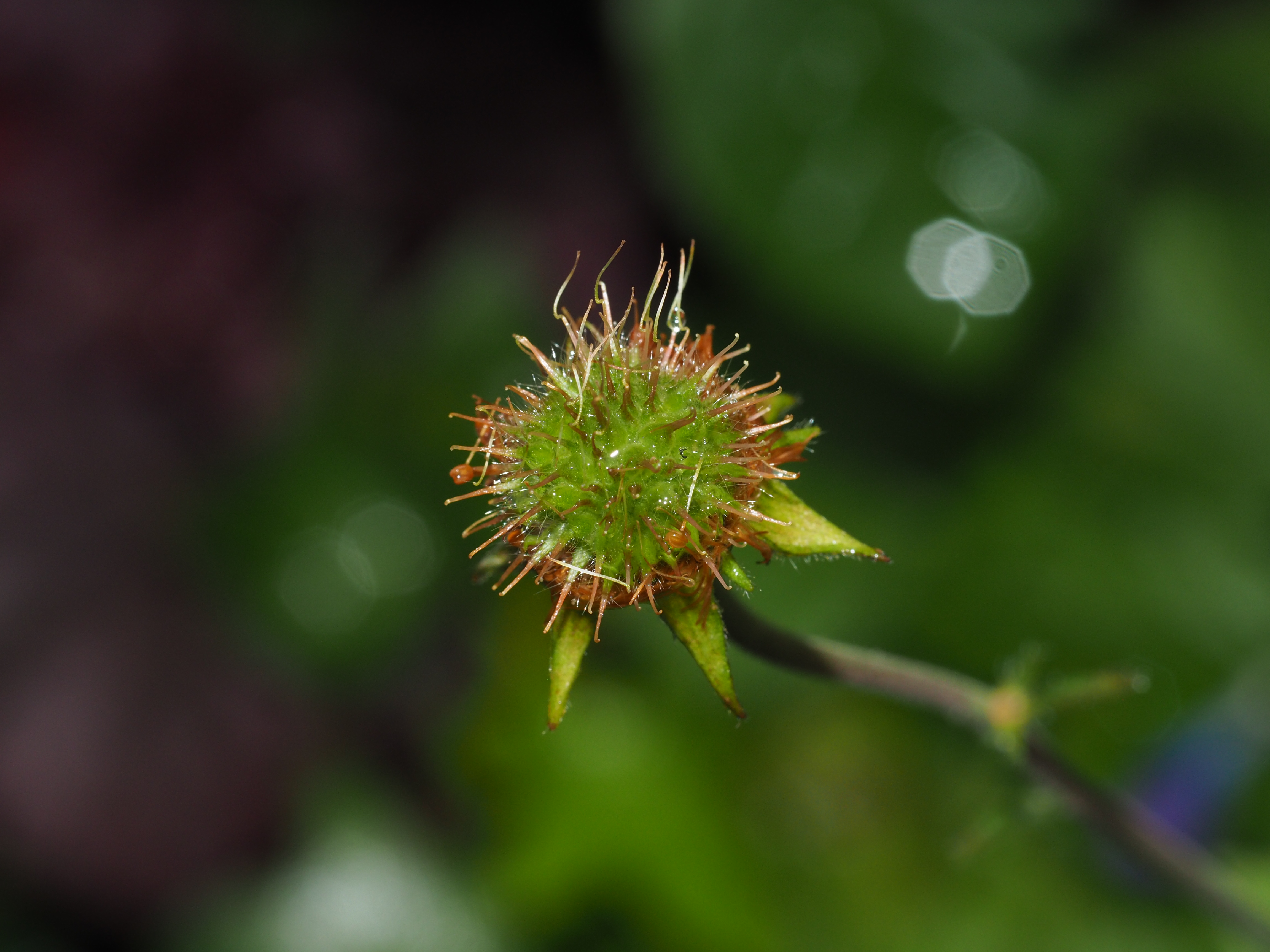 路边青是蔷薇科的成员,它的别名也叫水杨梅,果实形状与杨梅类似,许多离生的雌蕊在果期形成一个圆圆的聚合果,柱头并不会脱落而是保留在果实上,与”新冠病毒”外观十分相似。