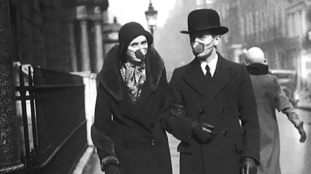 1918年西班牙流感时期,伦敦街头行人佩戴简易口罩。(图片来自网络)