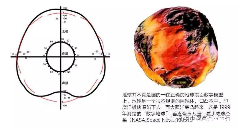 地球的形状通常是指大地水准面所圈闭的形状(图3),地球不是一个正圆球体,而是两极略扁,赤道凸出的旋转椭球体。