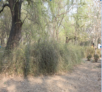 连翘的小枝颜色较深,一般为浅褐色,圆柱形,而且中空。迎春的小枝为绿色,四棱形,实心。