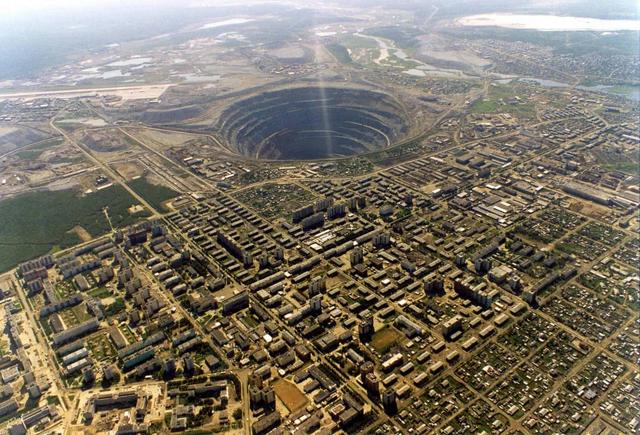 米尔内钻石矿场的钻石蕴藏丰富量实在匪夷所思,它极大的帮助了前苏联在二战后迅速恢复元气并和支撑了美苏冷战时期的天文数字般的军费,从1957年开始这个露天的矿床就开始越挖越深,到2004年停止开挖露天矿时候,已经形成了直径1200米,深度超过525米的巨大矿坑!