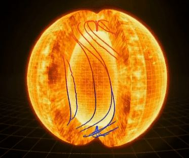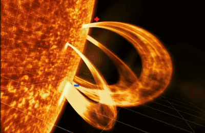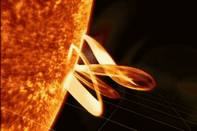 带电粒子会在这两个对应的磁场之间形成一个拱桥结构,这就是日珥,这个拱桥受到洛仑兹力而疯狂扭动,有两种情况会导致破裂,一种是短路时,另一种则是受到磁重联结突然释放的能量影响而加速带电粒子,使其逃脱强大的太阳引力向宇宙空间扩散。