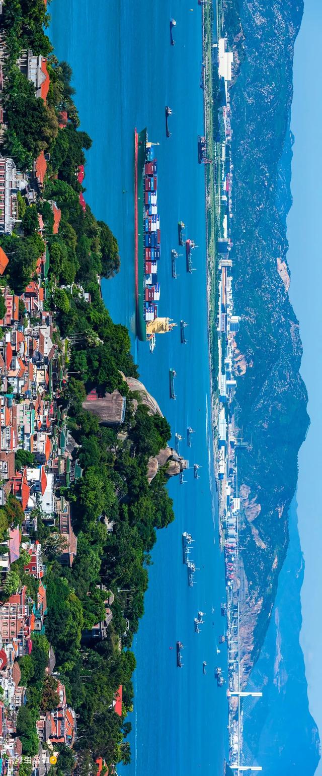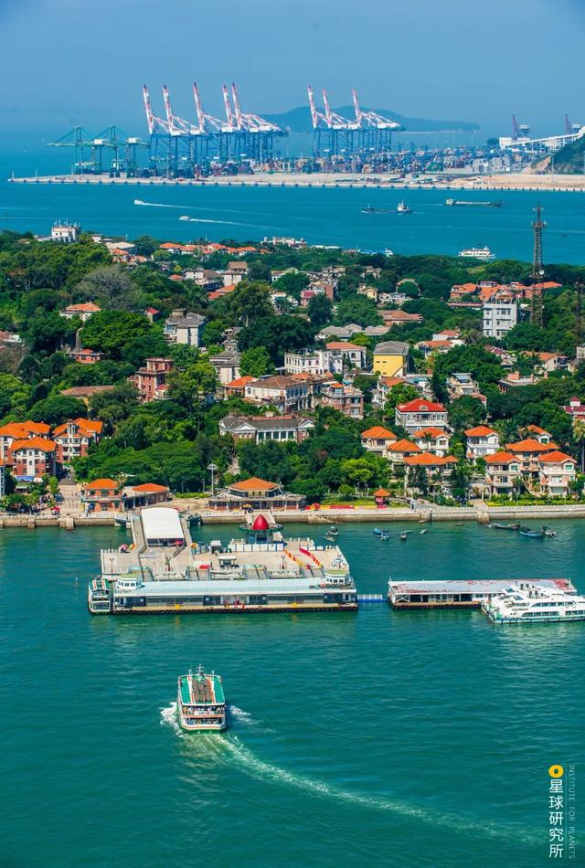 (近处的鼓浪屿轮渡码头和远处的厦门集装箱码头,摄影师@吴伟)