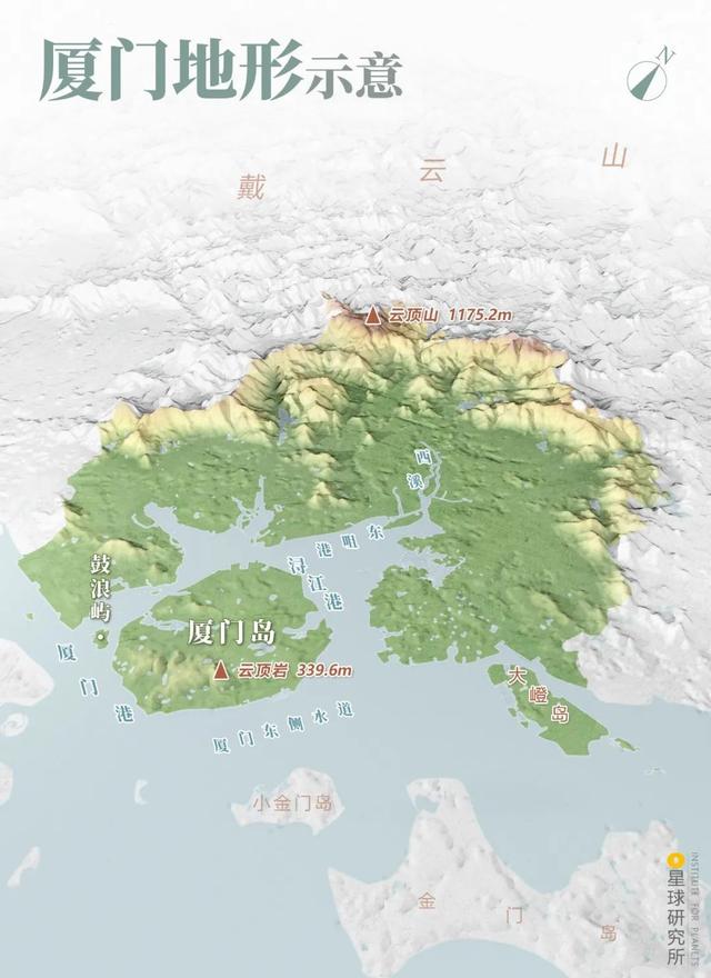 (厦门地形,整体地势西高东低,制图@巩向杰&郑伯容/星球研究所)