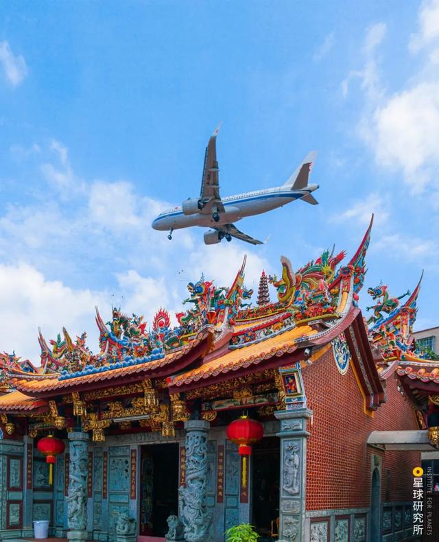(飞过厦门清水宫上空的飞机,摄影师@李琼)