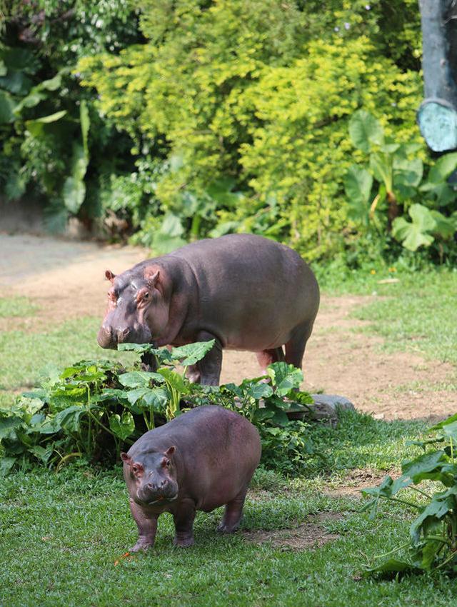 “宝宝”一出生体重就有30—35千克,体长可达65—85 厘米。它出生时就会睁着眼睛在水中缓慢进行站立、行走和游泳,半个小时就吃到了母亲的初乳,然后差不多每小时吃一次奶。河马“宝宝”十分逗人喜爱,每当有“宝宝”出生都会吸引大量游客来到动物园观赏,人气爆棚。