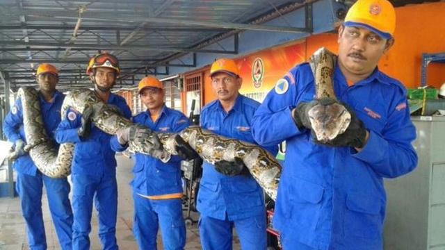 2016年4月12日,LiveScience报道,马来西亚的一个建筑工地上捕获了一条长26.2英尺(8米)长的网状巨蟒,但三天后该蛇在产卵时死亡。据《卫报》报道,工人们在槟城岛Paya Terubong的立交桥建筑工地上发现了这条巨大的网纹蟒。