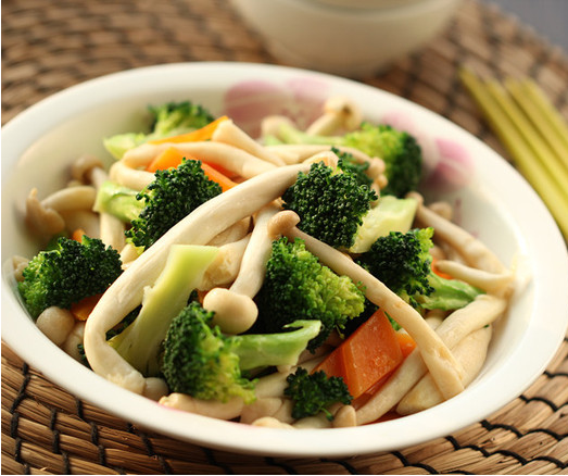 海鲜菇的丰富营养和膳食纤维以及西蓝花所含的高含量维生素C,不仅能补充身体所需有益成分,还能清除身体内的垃圾,起到更新体内环境增强皮肤弹性以及瘦身减肥的效果。
