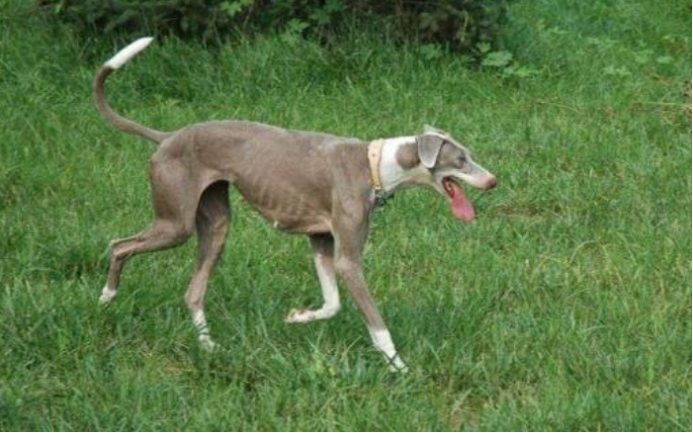 尾似鼠尾状、灵活呈圆圈状摆动,公犬十六节、母犬十八节,下垂超后腿飞节一寸以上。身高60-75公分,兔爪,公犬睾丸紧贴于大腿两侧,呈前后排列。毛短于1cm,颜色多样,有灰色、血红色、纯白色、黑色、虎皮色、米黄色等。其中以灰色、血红色最佳。
