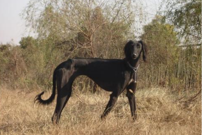 躯体较长,肌肉发达,尾巴低垂末端卷曲。耳、前后肢、尾部有饰毛,耳毛由耳根部长起至耳尖,耳尖无长毛。胸深腰细背呈弓形,颜色多样,现有黑色、虎皮色、白色。跟东非猎犬极为相似。