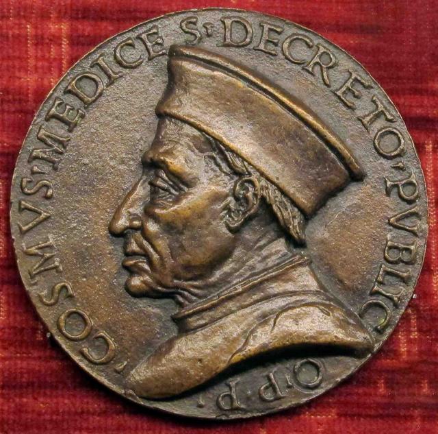 图9a-1 佛罗伦萨共和政府1460年代中后期为老柯西莫铸造的纪念章丨图片来源:维基百科