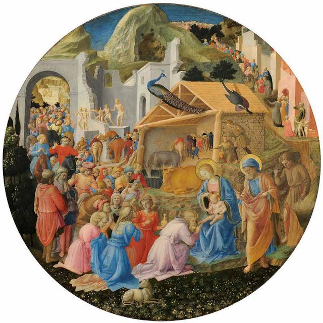 图7a 佛拉·安吉利古和菲利波·利皮,《三王朝拜》,木板蛋彩画,1440-1460年绘制,直径137.3厘米,现陈列于美国华盛顿特区国立艺术廊丨图片来源:维基百科