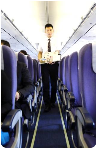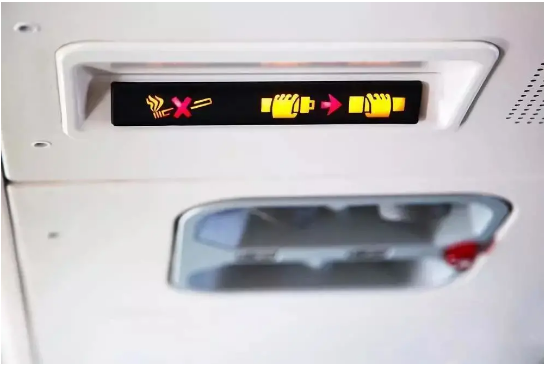 当飞机开始推出进行飞行操作准备时,机组人员会打开飞机客舱内部的信号指示灯,乘客可以清楚看到安全带系留提示,禁止吸烟提示和洗手间是否有人提示。
