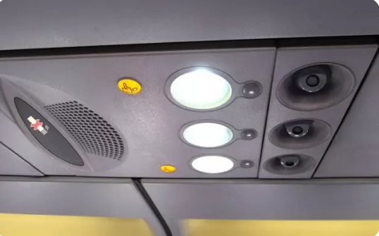 阅读灯安装在每位乘客座位上方,当客舱内灯光强度影响阅读时,可以按压开关按钮,打开阅读灯,为阅读环境提供良好的照明,并且阅读角度可调整,使更加贴心和人性化。