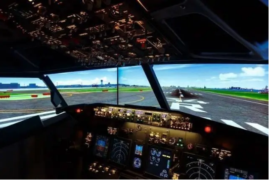 这个阶段主要是熟悉机舱环境、仪表以及操纵,为实飞做准备。模拟机就像一个仿真的大型电子游戏机,正前方是三面环绕的超大屏幕,模拟飞行中的主视野,操作面板与实际飞机完全相同,操纵起来比电子游戏复杂得多,也好玩得多。不过模拟训练可不是闹着玩的,每一次失误就意味着实飞中的险情,所以一定要认真体会操纵仪器的细节。