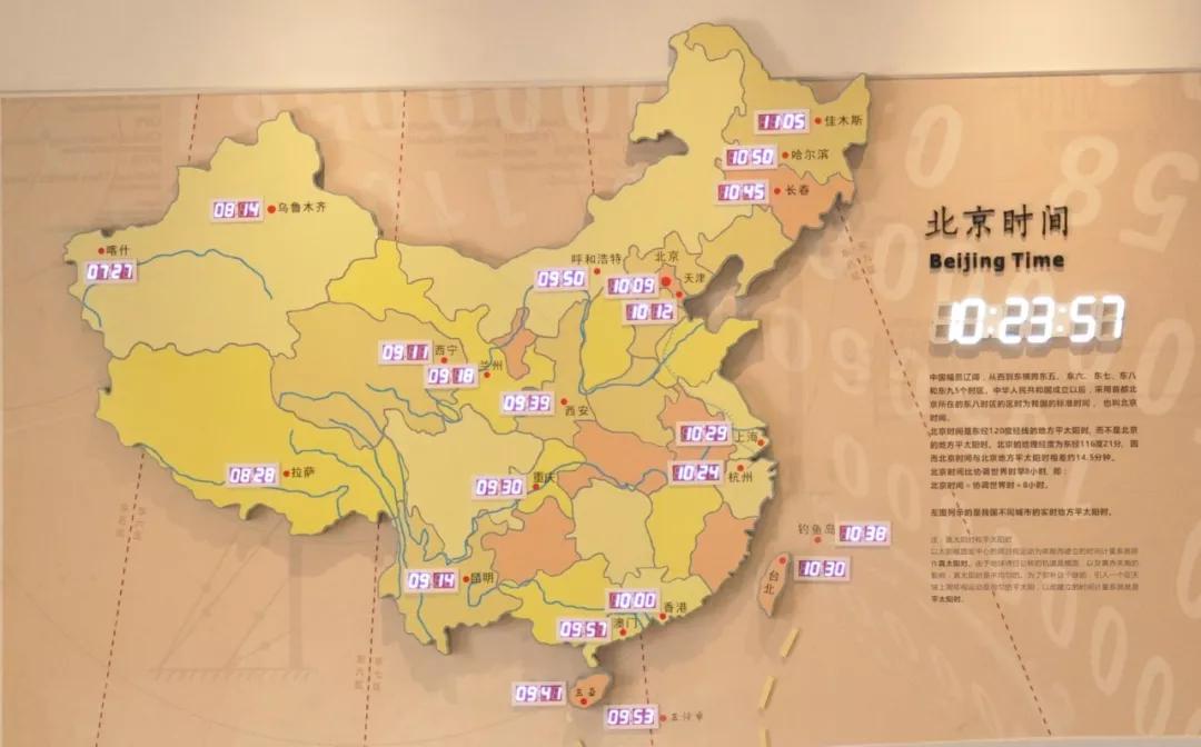 也就是说,“北京时间”是东经120度的时间,而北京位于东经116.4度,因此,北京当地时间与北京时间相差约14分半钟;而杭州地处东经120.2度,因此,杭州本地的时间与北京时间最接近。