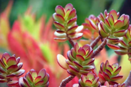 玉树是一种很好养且具有观赏性的植物,它的品种有很多,有的颜色不一样,比如说姬花月的叶子一般就是浅绿到浅黄绿色或者是深绿色,最与众不同的是它的叶子边缘会出现泛红或者是直接变成红褐色,它是一种多年生的常绿亚质灌木,属于园艺品种里面的一种。其植株的高度大概是在75厘米左右,有很多的分支,其叶子也是交互对生的,十分漂亮。