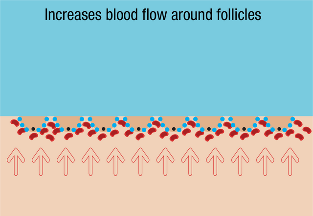 米诺地尔在头皮部位依然发挥着血管扩张的作用,不过对于头皮来说,那可就是雪中送炭了,通过促进局部血管的舒张,可激活毛囊、增加毛囊附近血流,恢复了毛囊周围的微循环,进一步刺激毛发生长,阻止头发变细。结果就是整体让生长初期毛囊比例增加,休止期毛囊减少,毛囊大小增加,从而达到生发效果[6]。