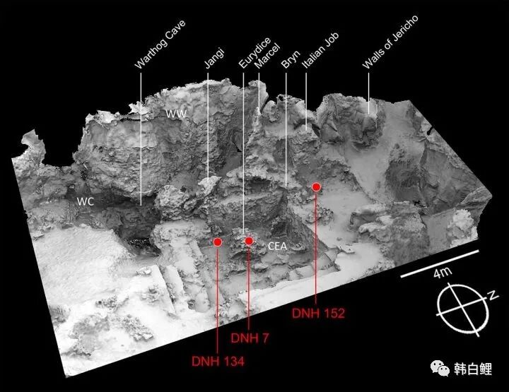 发现“小西蒙”(编号DNH134)和罗百氏傍人(编号DNH152)的位置