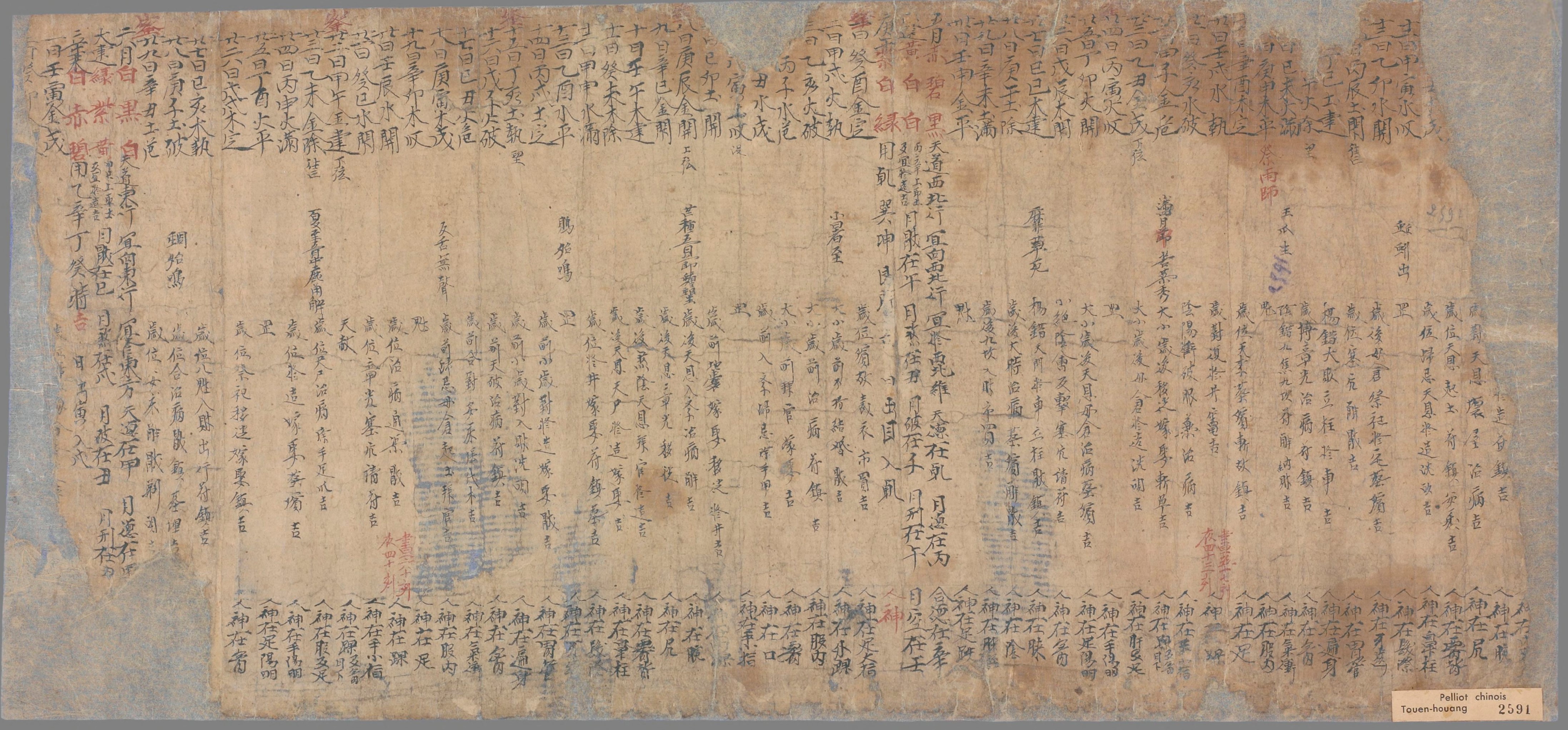(这件历书中包含月令和物候的内容。如写到立夏时有“蝼蝈鸣,蚯蚓出,王瓜生”。也就是说,立夏时节可以听到青蛙在田间的鸣叫,大地上可以看到蚯蚓掘土,然后王瓜的蔓藤开始快速攀爬生长。)