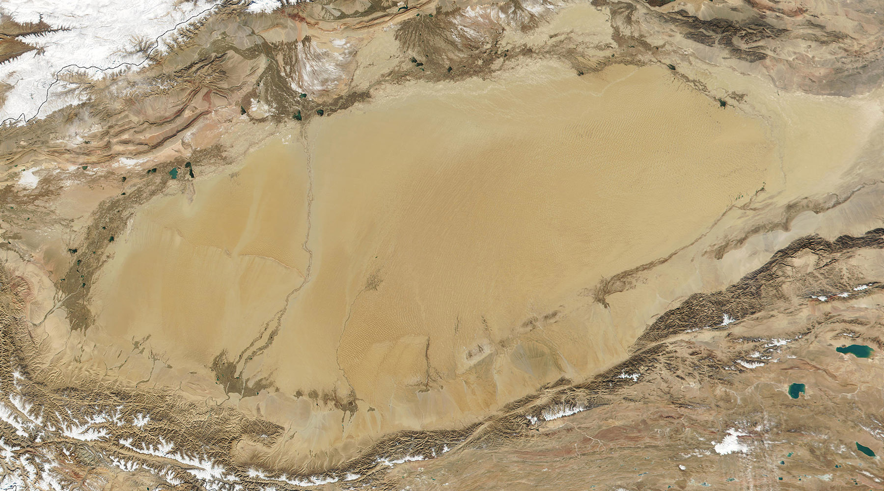 由于地形的变化,一片汪洋就被分割成了一堆大大小小的湖泊,然而由于塔里木盆地被大幅抬高了,所以这些大大小小的湖泊也就很自然地都成为了外流湖,此时的塔里木的确是名副其实的“河流汇集”之地,只不过这些河流全都是向外流的,于是湖水越来越少,塔里木盆地也就越来越干,最终这里诞生了一片面积达33万平方公里的巨大沙漠。