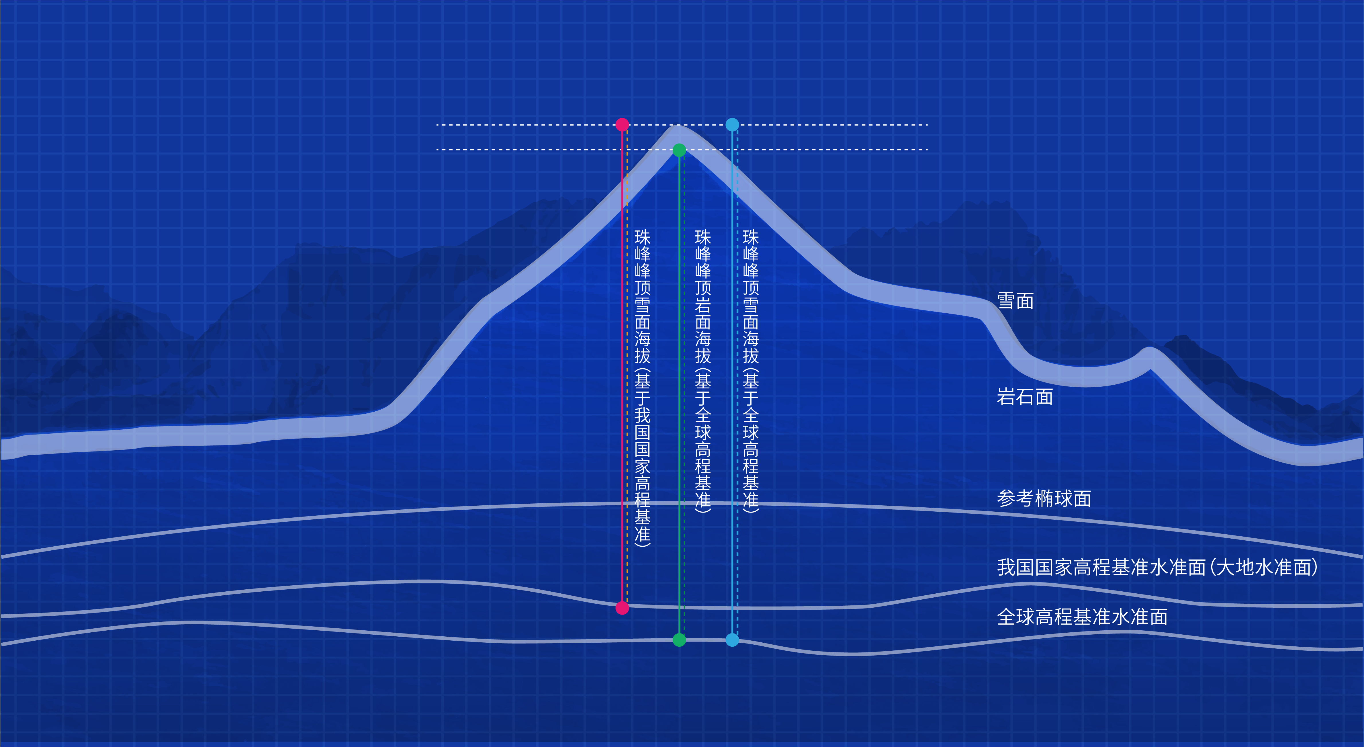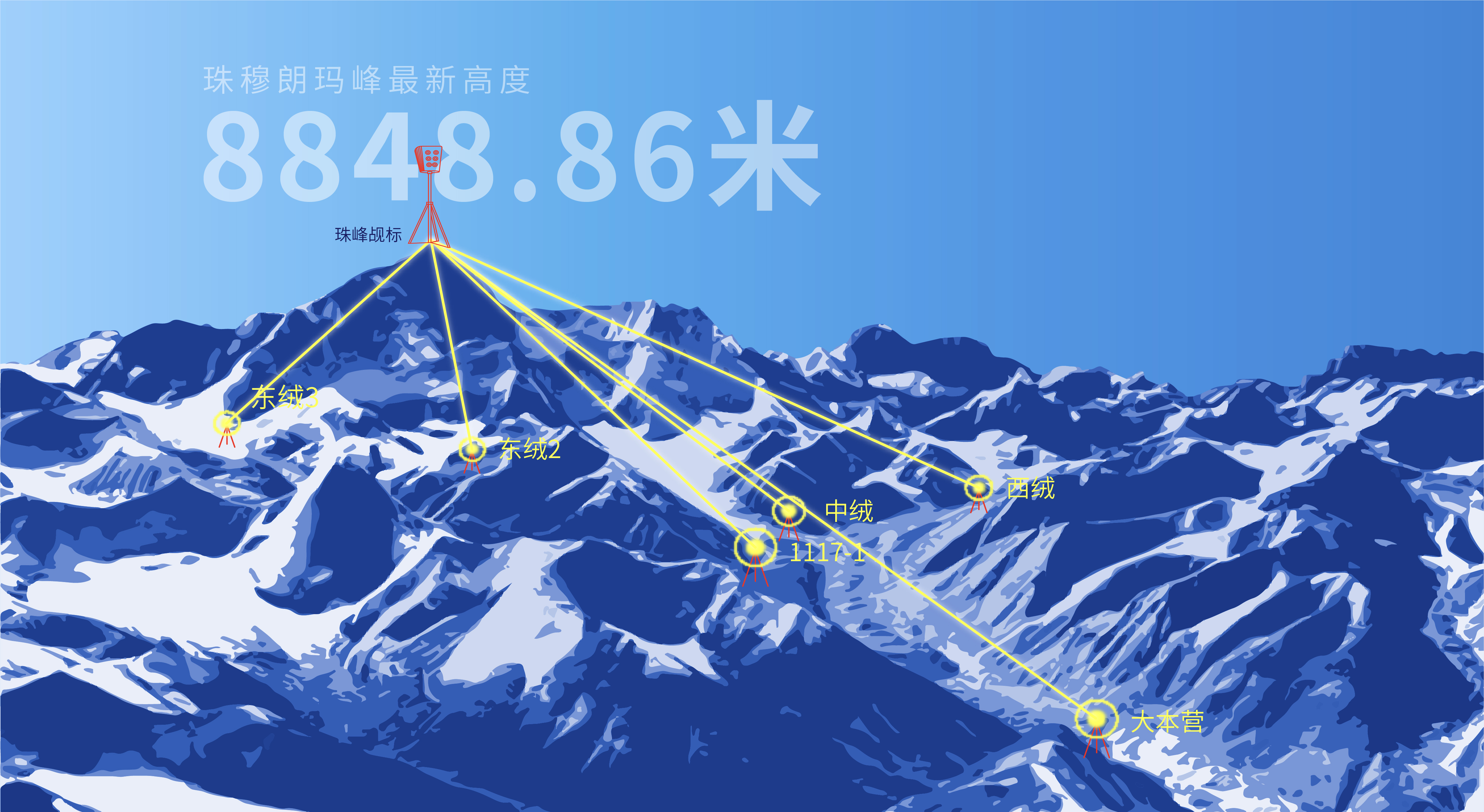 因此,珠峰高程测量采用了多种测量技术,再经过精密的数据处理,最终获得珠峰峰顶高程。