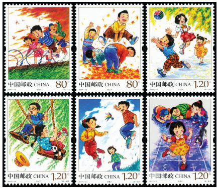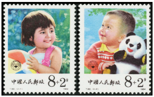 (14)附捐邮票 是在邮票原有面值上另外增加一定的附捐金额,附捐的金额作为捐款费,作为社会公共福利事业的基金,也叫福利邮票或慈善邮票。在附捐邮票上,邮资面值和附捐金额的表示方法是 :邮资面值+附捐金额,附捐金额不能作为邮资使用。中华人民共和国的第一套附捐邮票是1984年2月16日发行的T92儿 童(附捐邮票),全套2枚。目的是为了体现国家对少年儿童的重视,并为中国儿童和少年基金会筹集部分基金。这套邮票印有中国儿童和少年基金会会徽,图名分别为 :(2-1)“ 在 阳 光 下 ”、(2-2)“健康成长”,每枚邮票面值8分+2分。其中8分是邮资,2分是给儿童和少年基金会的捐款。