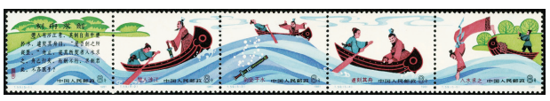 (3)“文”字邮票 狭义上是指从1967年4月20日至1970年1月21日,“文革”期间发行的19套80枚邮票的统称。广义上是指这期间正式发行、未发行和撤销发行的24套88枚邮票的统称(含《纪念毛主席创建井冈山革命根据地四十周年》等5套邮票)。这些邮票上未印志号,政治色彩浓重。