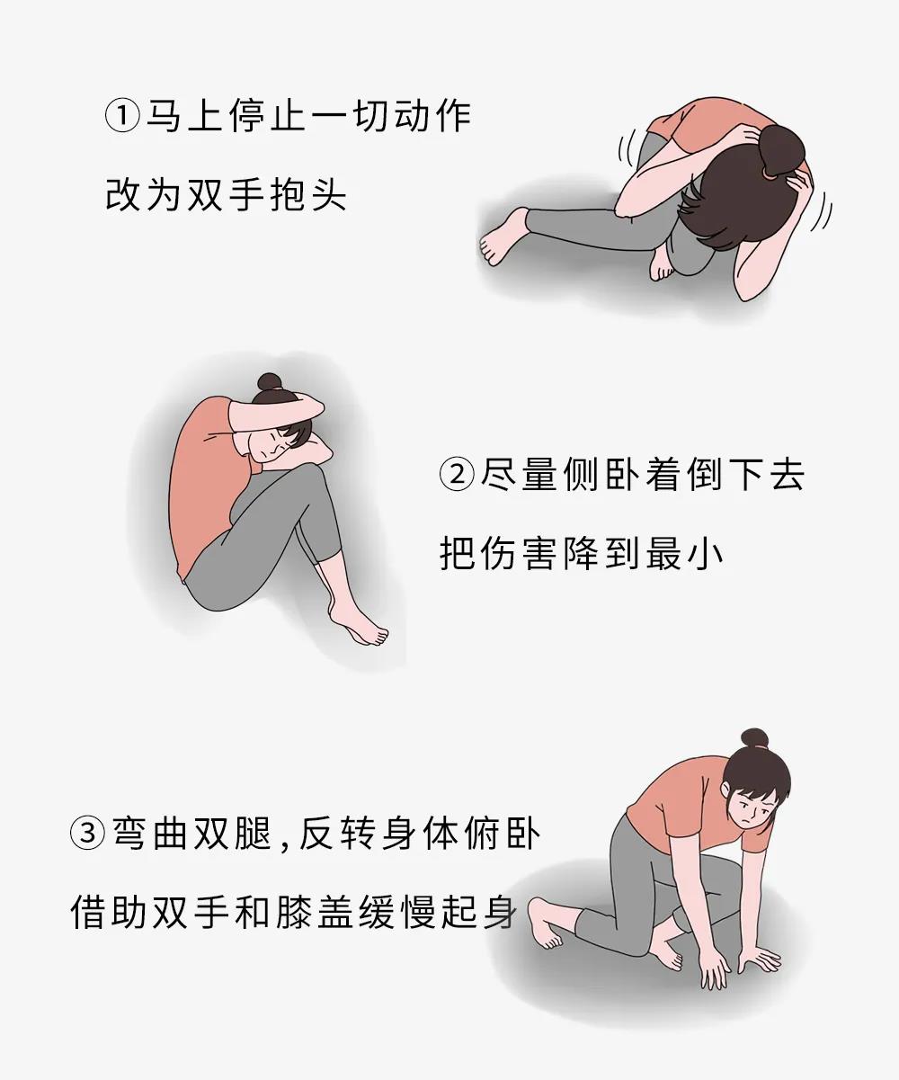 摔倒了怎么办?如果情况允许,反应也够快的话,可以采取下面的措施: