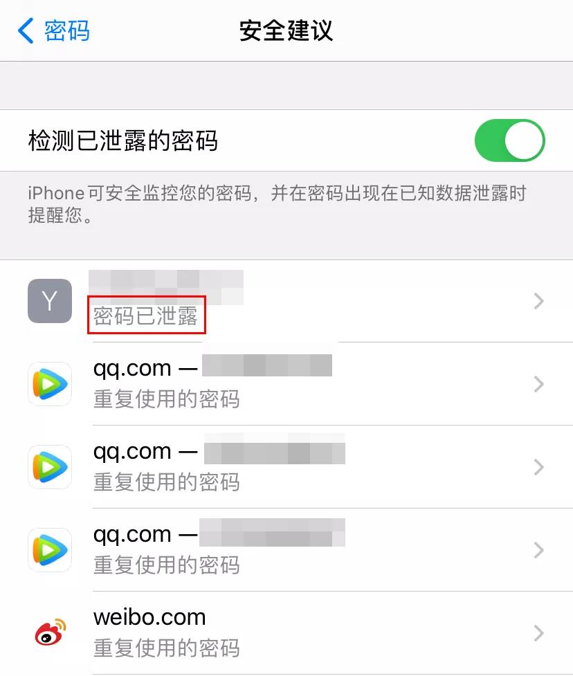 如果你是iPhone手机,点开设置-密码-安全建议,可以查你的密码有没有泄露: