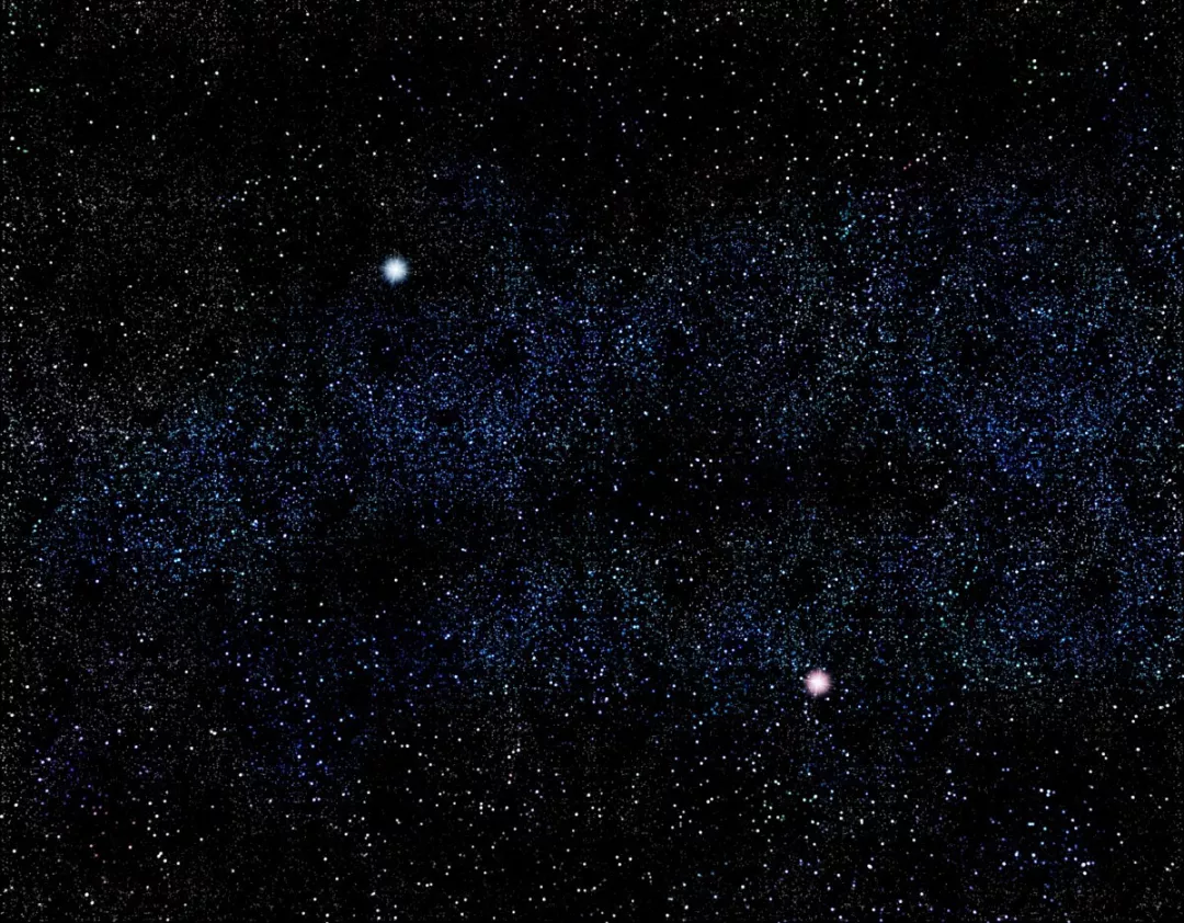 既然是两颗恒星,那么它们两个注定只能遥遥相望,永远不能相见。它们之间的距离是16.4光年,如果以光速进行通信的话,一来一去就需要32年时间,看来它们比杨过和小龙女还要悲惨。当然了,古人并不清楚这样的天文数字的距离,只会想象它们就分布在银河的两岸,相隔距离非常近,甚至于还想象出了非常有趣的故事,让“客星”去拜访牛郎和织女。