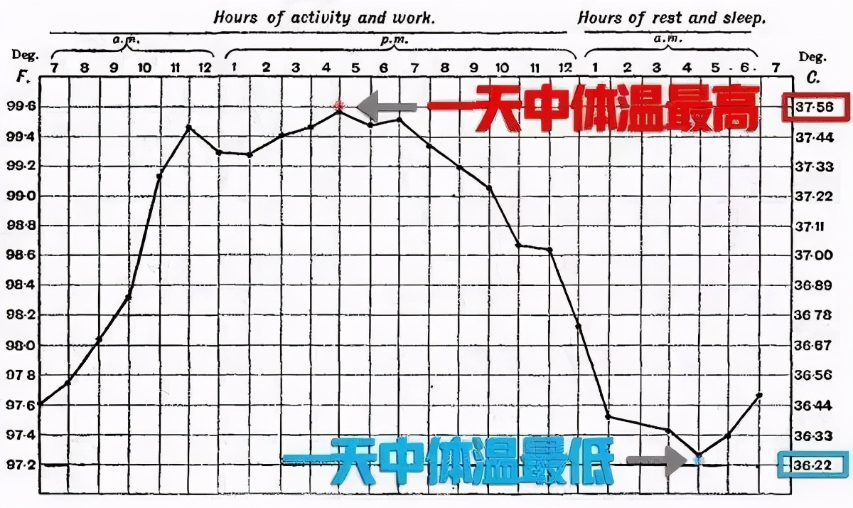 事实上,不同时间段人的体温也是有一定差异的。这主要是由于环境温度以及自身的代谢模式导致的。一个周期内,环境温度会发生变化,而人的代谢也随着饮食以及作息规律进行着相应的变化,这种情况下,对体温也会产生影响。