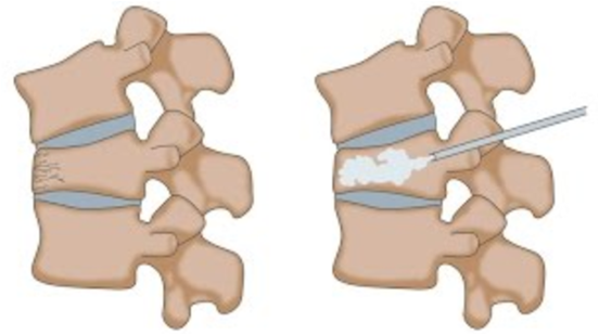 本病治疗方法包括保守疗法和手术疗法。传统的治疗手段就是卧床休息,口服止痛药和使用降钙素减轻骨痛等保守治疗方法,大部分患者疼痛症状可得到缓解,但长期卧床是一件比较痛苦的事情,严重时在床上翻身的时候都可引起疼痛,又可导致骨质疏松程度加重及褥疮、下肢深静脉血栓等并发症出现。对于这种骨质疏松性椎体压缩性骨折,有一个很好的微创治疗方法,就是经皮椎体强化术(PVA),创伤小,止痛效果良好,能让患者尽早恢复日常活动,大大提高生活质量。PVA主要包括经皮椎体成形术(PVP)和经皮后凸成形术(PKP),简单地说,PVA就是在病变压缩椎体背部打上一针“骨水泥”,撑起椎体恢复高度和硬度,达到解除疼痛,早日活动的目的。