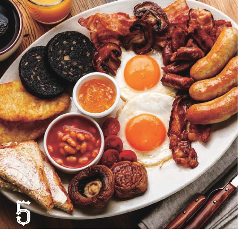 其实,在颓废的19世纪到来之前,英国人的早餐通常只不过是一块面包或面包卷。培根和鸡蛋则是属于丰盛的晚餐的。维多利亚时代的人将培根和鸡蛋变成了早餐,连同羊肉排和羊腰子,烟熏鲱鱼、青豆鱼蛋烩饭、冷的牛排派甚至咖喱等都端上了早餐的餐桌。即使是最饕餮的维多利亚时代的绅士也不能吃掉每一道菜。据说在英国,治疗宿醉、补充能量、周末放纵一下,都离不开全英式早餐,英式早餐在英国文化中根深蒂固,很难想象没有它的生活。